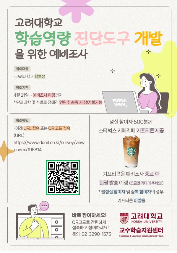 1. 조사명: 고려대학교 학습역량 진단도구 개발을 위한 예비조사